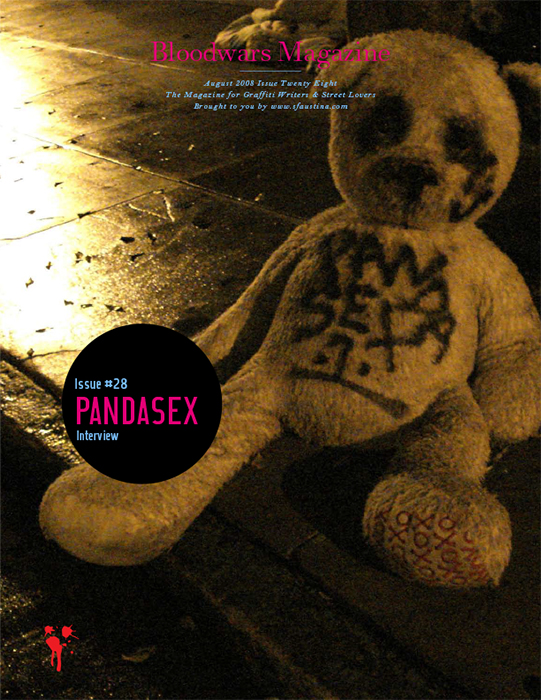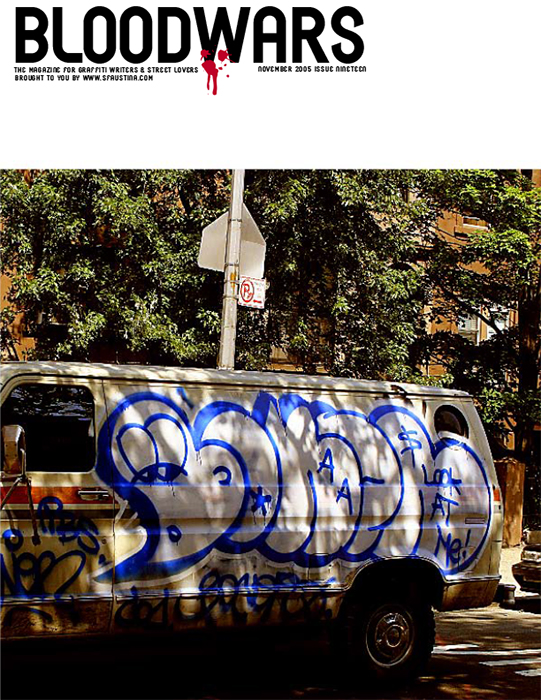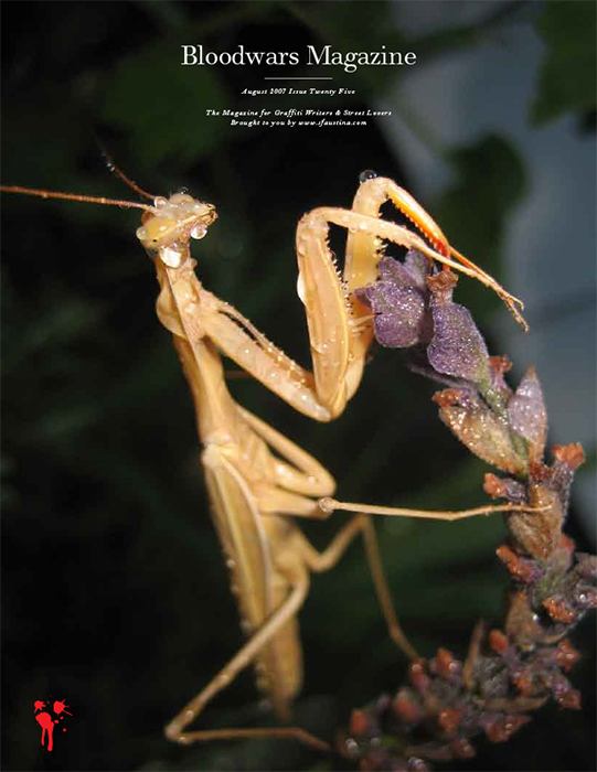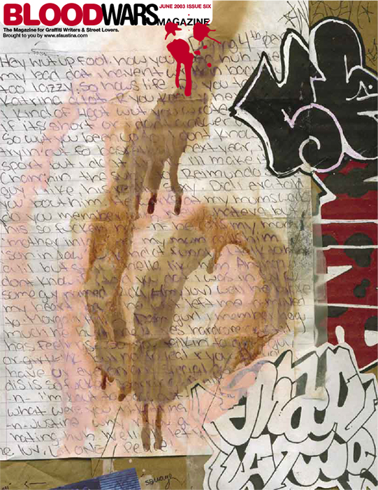 Bloodwars, the pioneering online PDF graffiti magazine, was founded by Sfaustina (www.sfaustina.com). It’s initial goal was to shed light on various forms and styles of street graffiti bombing, street art, photography, music, and other captivating elements that I encountered in the world. Established during the early days of the internet, before the rise of social media or any online platform, Bloodwars experienced remarkable growth, with its mailing list expanding into the thousands and attracting viewers and contributors from all over the globe. The magazine was released quarterly, with its first volume, Vol. 1, featuring 28 issues, Vol. 2 with 5 issues, and Vol. 3 the last with 1 issue. Additionally, there were several related self-published spin-off books. This experience led to the hardcover book by Sfaustina and Jocelyn Super titled “Bay Area Graffiti, ‘80s-‘90s: Early Bombing.” I am grateful to everyone who contributed and viewed Bloodwars Magazine.